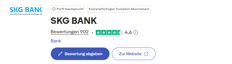 Die SKG Bank verfügt auf Bewertungsportalen wie Trustpilot.com übe exzellente Bewertungen und Erfahrungsberichte.